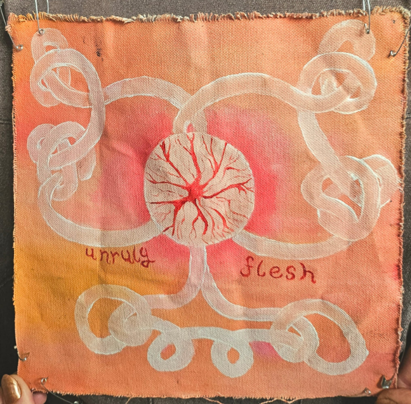 Unruly Flesh, (2025) Acrylic on canvas, 15 x 15 cm.